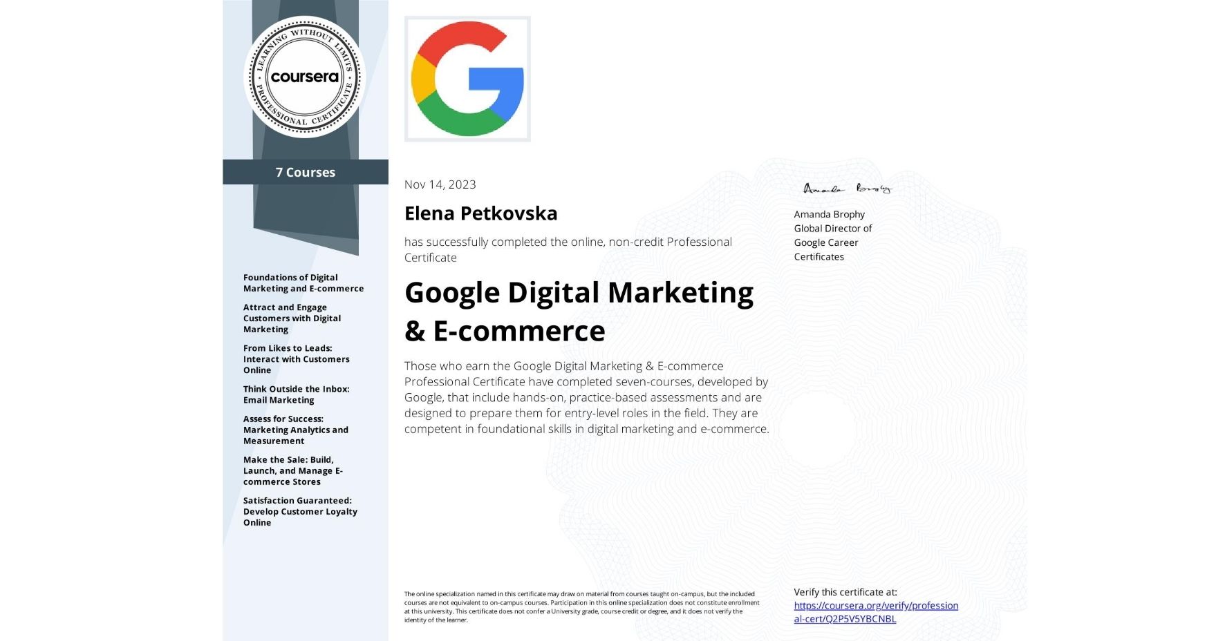 GOOGLE DIGITAL MARKETING & E-COMMERCE CERTIFICATE
